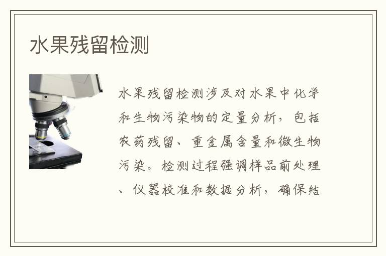 關(guān)鍵詞:水果殘留測(cè)試儀器,水果殘留項(xiàng)目報(bào)價(jià),水果殘留測(cè)試范圍