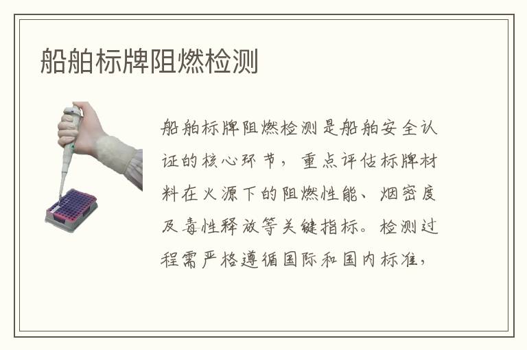 關(guān)鍵詞:船舶標(biāo)牌阻燃測(cè)試方法,船舶標(biāo)牌阻燃測(cè)試范圍,船舶標(biāo)牌阻燃項(xiàng)目報(bào)價(jià)