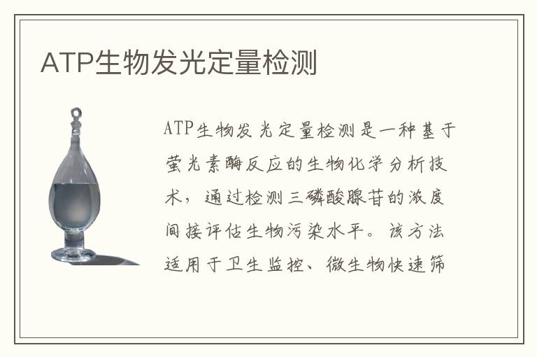 關(guān)鍵詞:ATP生物發(fā)光定量測(cè)試案例,ATP生物發(fā)光定量測(cè)試周期,ATP生物發(fā)光定量測(cè)試儀器