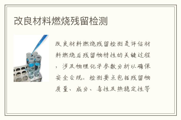 關(guān)鍵詞:改良材料燃燒殘留測(cè)試儀器,改良材料燃燒殘留測(cè)試范圍,改良材料燃燒殘留項(xiàng)目報(bào)價(jià)