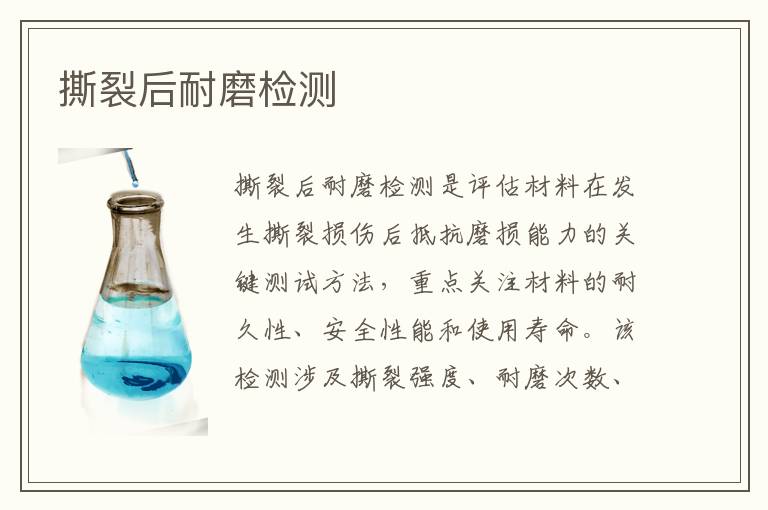 關(guān)鍵詞:撕裂后耐磨測(cè)試范圍,撕裂后耐磨測(cè)試周期,撕裂后耐磨測(cè)試方法