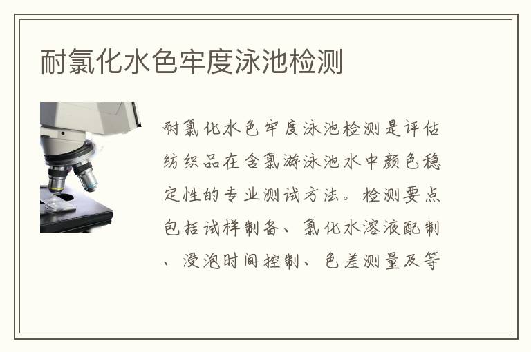 關(guān)鍵詞:耐氯化水色牢度泳池測(cè)試案例,耐氯化水色牢度泳池測(cè)試機(jī)構(gòu),耐氯化水色牢度泳池測(cè)試儀器