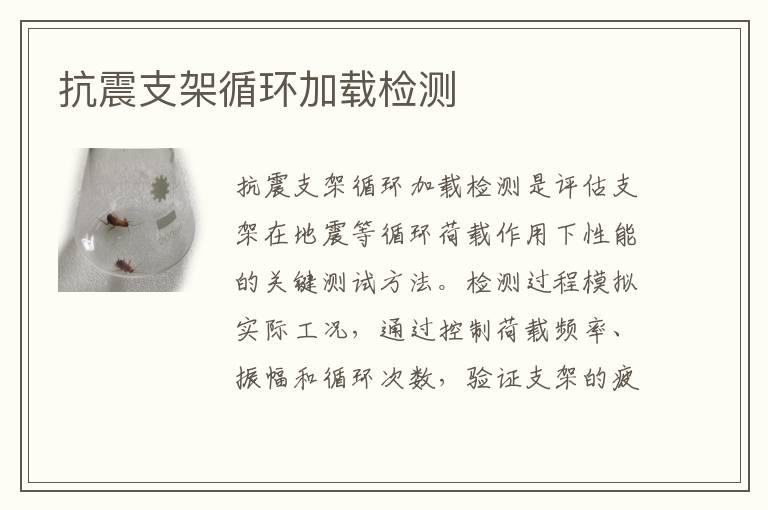 關(guān)鍵詞:抗震支架循環(huán)加載測(cè)試范圍,抗震支架循環(huán)加載測(cè)試方法,抗震支架循環(huán)加載測(cè)試標(biāo)準(zhǔn)