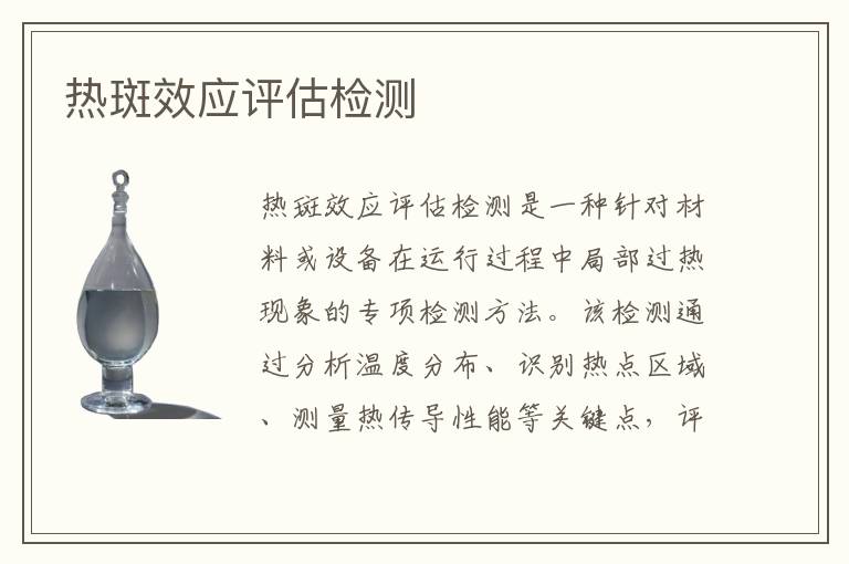 熱傳導(dǎo)性能測試檢測:通過熱流計或激光閃射法測量材料的熱導(dǎo)率,確定熱量傳遞能力,評估在高溫環(huán)境下熱斑風(fēng)險的潛在因素。