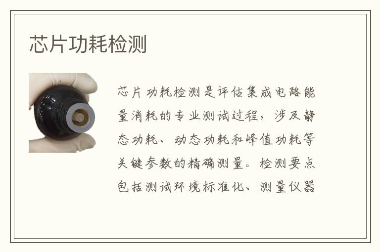 芯片功耗檢測是評估集成電路能量消耗的專業(yè)測試過程,涉及靜態(tài)功耗、動態(tài)功耗和峰值功耗等關鍵參數(shù)的精確測量。檢測要點包括測試環(huán)境標準化、測量儀器校準、數(shù)據(jù)準確性驗證以及標準合規(guī)性評估,確保芯片功耗性能符合設計規(guī)范和應用需求。專業(yè)檢測需嚴格控制溫度、電壓等變量,以提供可靠的測試結果支持芯片能效優(yōu)化。
