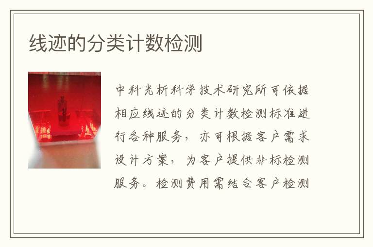 關(guān)鍵詞:線跡的分類計(jì)數(shù)測(cè)試周期,線跡的分類計(jì)數(shù)測(cè)試儀器,線跡的分類計(jì)數(shù)測(cè)試范圍