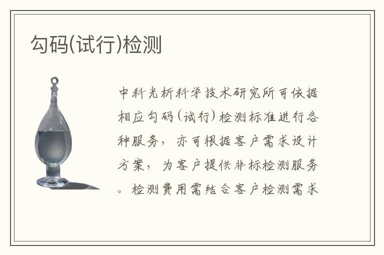 關(guān)鍵詞:勾碼(試行)測(cè)試儀器,勾碼(試行)測(cè)試標(biāo)準(zhǔn),勾碼(試行)測(cè)試方法