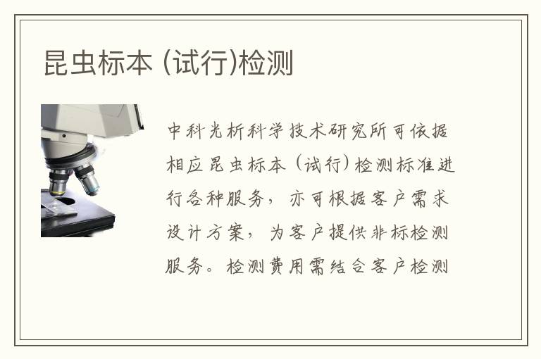 關(guān)鍵詞:昆蟲標(biāo)本(試行)測試周期,昆蟲標(biāo)本(試行)測試標(biāo)準(zhǔn),昆蟲標(biāo)本(試行)測試范圍