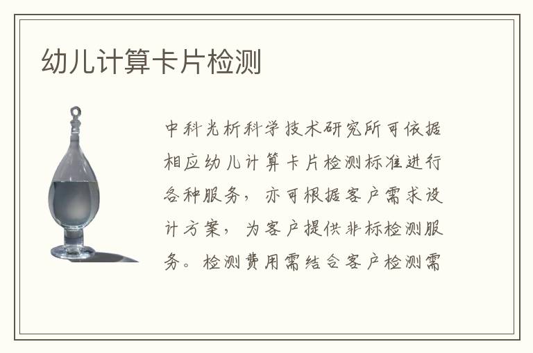關(guān)鍵詞:幼兒計(jì)算卡片測試方法,幼兒計(jì)算卡片測試周期,幼兒計(jì)算卡片測試機(jī)構(gòu)