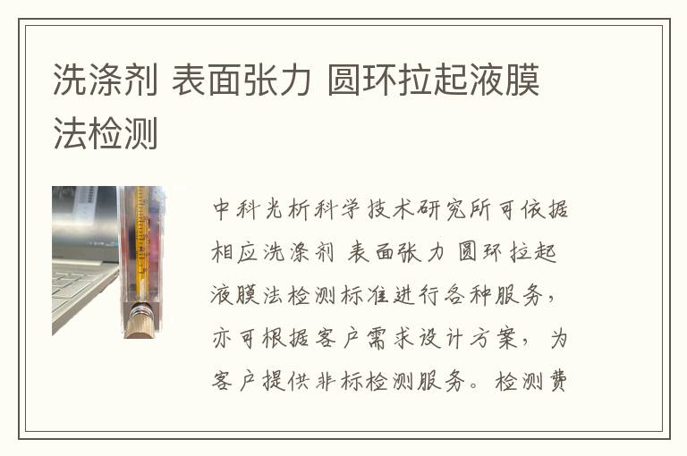 關(guān)鍵詞:洗滌劑表面張力圓環(huán)拉起液膜法測試標(biāo)準(zhǔn),洗滌劑表面張力圓環(huán)拉起液膜法測試方法,洗滌劑表面張力圓環(huán)拉起液膜法測試儀器