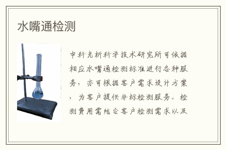 關(guān)鍵詞:水嘴通項(xiàng)目報(bào)價(jià),水嘴通測(cè)試周期,水嘴通測(cè)試機(jī)構(gòu)