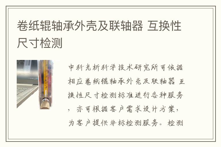 關(guān)鍵詞:卷紙輥軸承外殼及聯(lián)軸器互換性尺寸測試周期,卷紙輥軸承外殼及聯(lián)軸器互換性尺寸測試方法,卷紙輥軸承外殼及聯(lián)軸器互換性尺寸項(xiàng)目報(bào)價(jià)