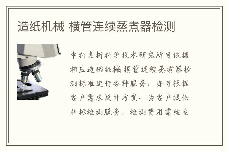 關(guān)鍵詞:造紙機(jī)械橫管連續(xù)蒸煮器測試案例,造紙機(jī)械橫管連續(xù)蒸煮器測試周期,造紙機(jī)械橫管連續(xù)蒸煮器測試范圍