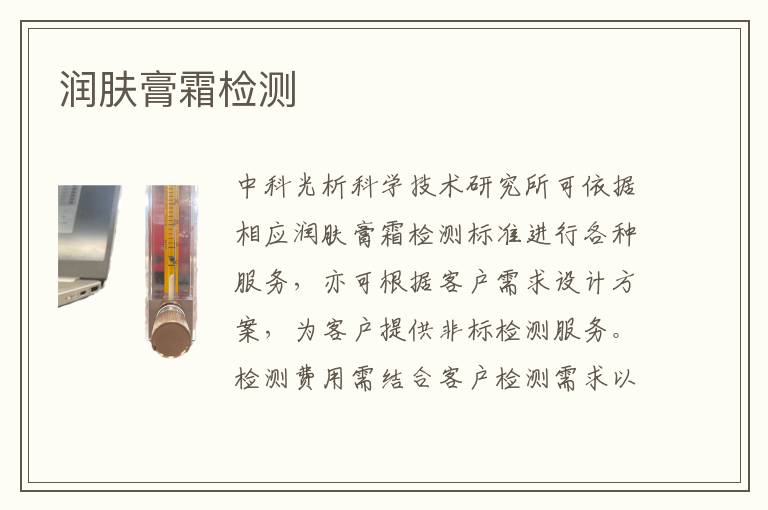 關(guān)鍵詞:潤(rùn)膚膏霜測(cè)試周期,潤(rùn)膚膏霜測(cè)試儀器,潤(rùn)膚膏霜測(cè)試機(jī)構(gòu)