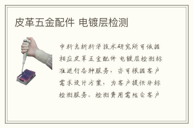 關鍵詞:皮革五金配件電鍍層項目報價,皮革五金配件電鍍層測試標準,皮革五金配件電鍍層測試周期