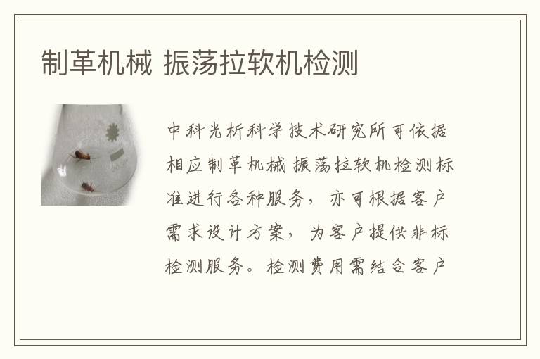 關(guān)鍵詞:制革機(jī)械振蕩拉軟機(jī)測(cè)試機(jī)構(gòu),制革機(jī)械振蕩拉軟機(jī)測(cè)試案例,制革機(jī)械振蕩拉軟機(jī)測(cè)試標(biāo)準(zhǔn)