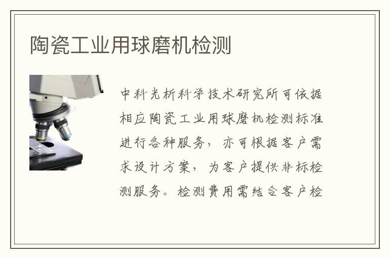 關(guān)鍵詞:陶瓷工業(yè)用球磨機(jī)項目報價,陶瓷工業(yè)用球磨機(jī)測試周期,陶瓷工業(yè)用球磨機(jī)測試儀器