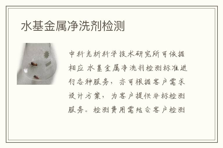 關(guān)鍵詞:水基金屬凈洗劑項(xiàng)目報(bào)價(jià),水基金屬凈洗劑測(cè)試儀器,水基金屬凈洗劑測(cè)試標(biāo)準(zhǔn)
