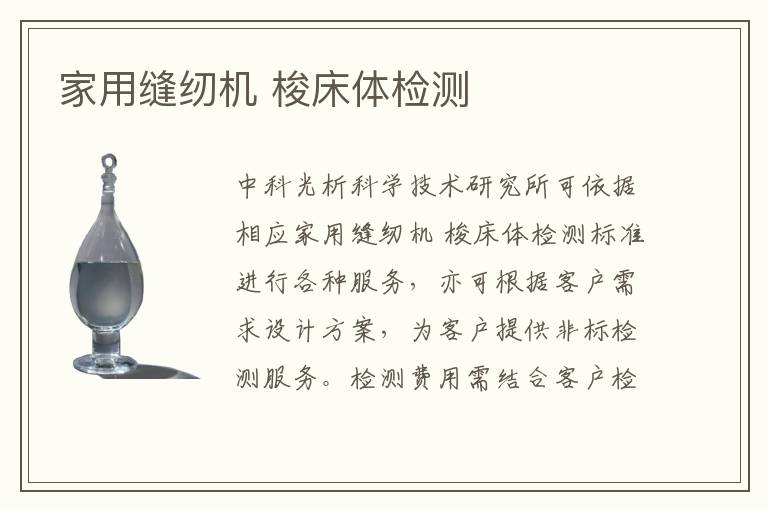 關(guān)鍵詞:家用縫紉機(jī)梭床體測(cè)試標(biāo)準(zhǔn),家用縫紉機(jī)梭床體測(cè)試周期,家用縫紉機(jī)梭床體測(cè)試案例