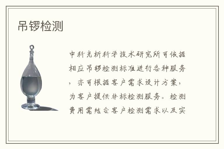 關(guān)鍵詞:吊鑼測試方法,吊鑼測試周期,吊鑼測試機構(gòu)