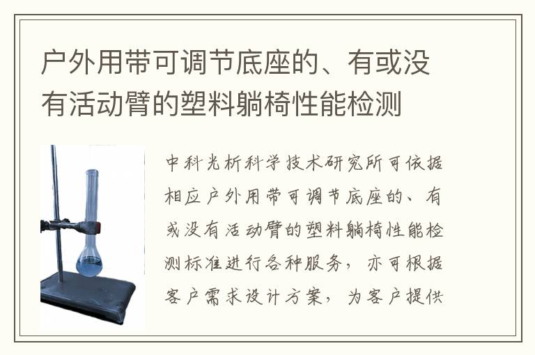 關(guān)鍵詞:戶外用帶可調(diào)節(jié)底座的、有或沒有活動臂的塑料躺椅性能項目報價,戶外用帶可調(diào)節(jié)底座的、有或沒有活動臂的塑料躺椅性能測試標準,戶外用帶可調(diào)節(jié)底座的、有或沒有活動臂的塑