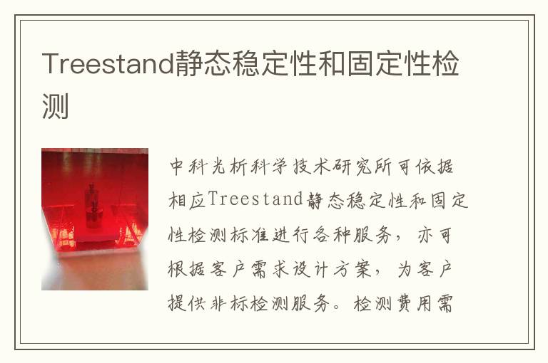 關(guān)鍵詞:Treestand靜態(tài)穩(wěn)定性和固定性項(xiàng)目報(bào)價(jià),Treestand靜態(tài)穩(wěn)定性和固定性測(cè)試標(biāo)準(zhǔn),Treestand靜態(tài)穩(wěn)定性和固定性測(cè)試周期