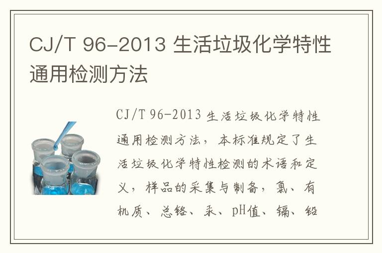 關(guān)鍵詞:CJ/T 96-2013 生活垃圾化學(xué)特性通用檢測(cè)方法