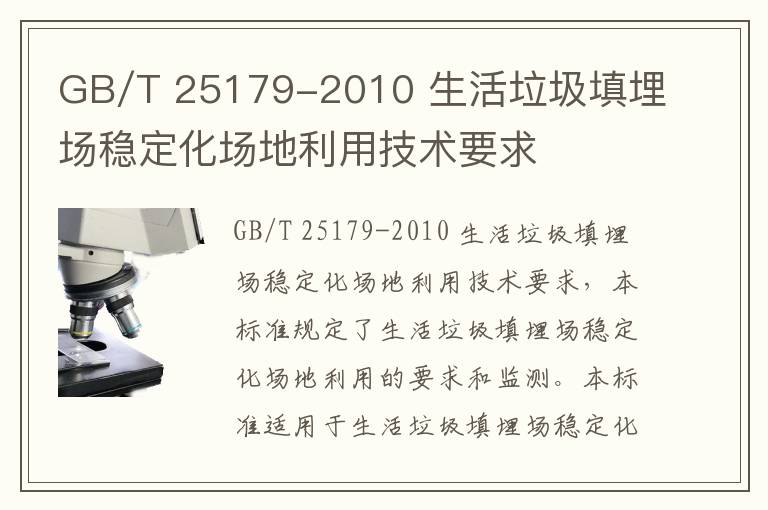 關(guān)鍵詞:GB/T 25179-2010 生活垃圾填埋場穩(wěn)定化場地利用