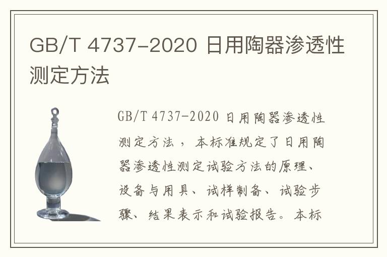 關(guān)鍵詞:GB/T 4737-2020 日用陶器滲透性測(cè)定方法