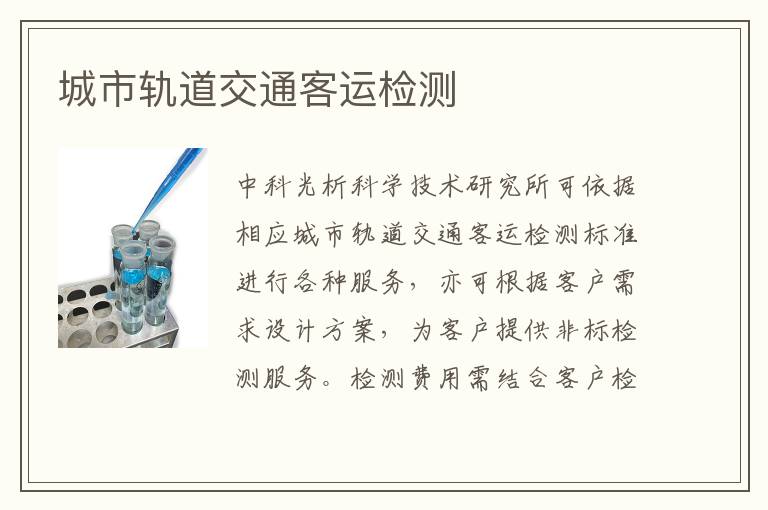 關(guān)鍵詞:城市軌道交通客運(yùn)測(cè)試機(jī)構(gòu),城市軌道交通客運(yùn)測(cè)試儀器,城市軌道交通客運(yùn)測(cè)試案例