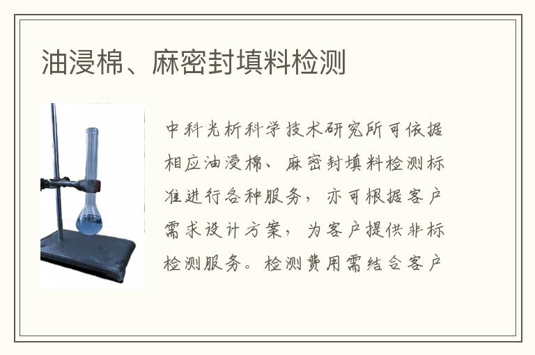 關(guān)鍵詞:油浸棉、麻密封填料測(cè)試儀器,油浸棉、麻密封填料測(cè)試案例,油浸棉、麻密封填料測(cè)試周期