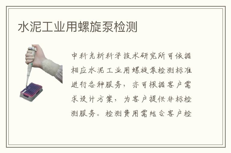 關(guān)鍵詞:水泥工業(yè)用螺旋泵測試案例,水泥工業(yè)用螺旋泵項目報價,水泥工業(yè)用螺旋泵測試儀器