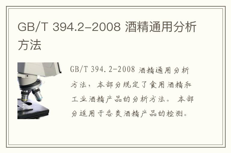 關(guān)鍵詞:GB/T 394.2-2008 酒精通用分析方法