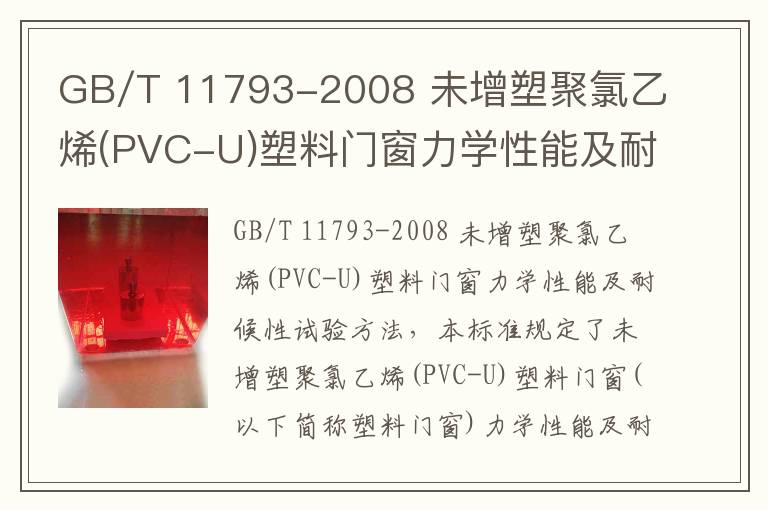 關(guān)鍵詞:GB/T 11793-2008 未增塑聚氯乙烯(PVC-U)塑料門窗力學(xué)性能及耐候性試驗(yàn)方法