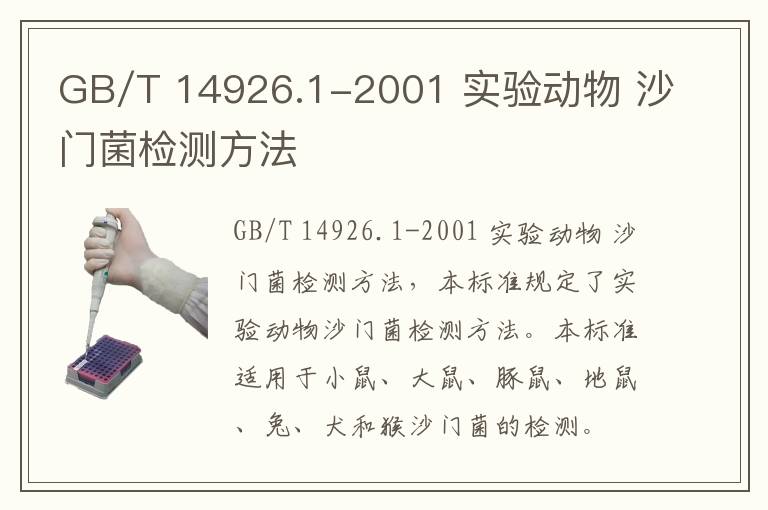 關(guān)鍵詞:GB/T 14926.1-2001 實驗動物 沙門菌檢測方法