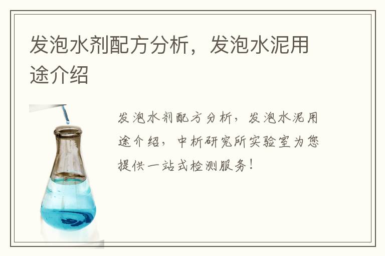 關鍵詞:發(fā)泡水劑配方分析測試標準,發(fā)泡水劑配方分析測試儀器,發(fā)泡水劑配方分析項目報價