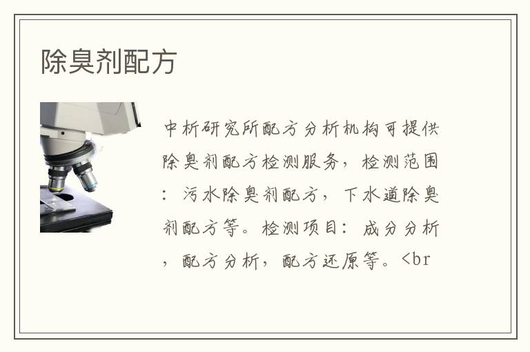 關鍵詞:除臭劑配方測試儀器,除臭劑配方測試標準,除臭劑配方項目報價