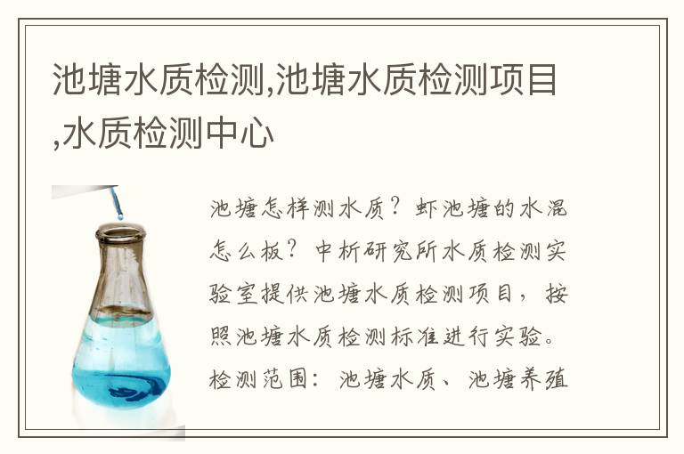 關(guān)鍵詞:池塘水質(zhì)測試范圍,池塘水質(zhì)項(xiàng)目報價,池塘水質(zhì)測試案例