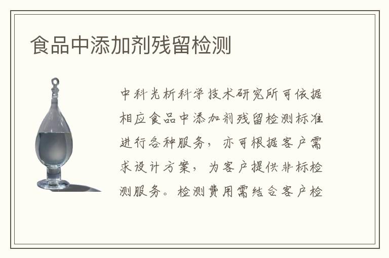 關(guān)鍵詞:食品中添加劑殘留項目報價,食品中添加劑殘留測試機構(gòu),食品中添加劑殘留測試范圍